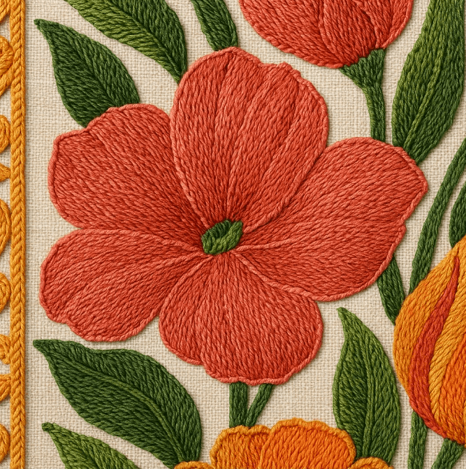 Change the design style to oil painting and embroidered.